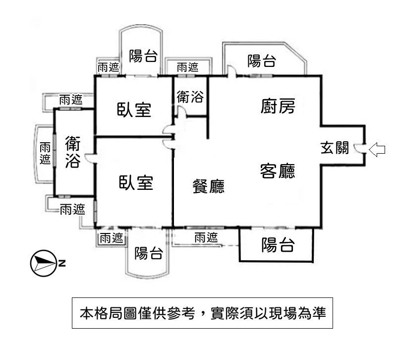 格局 : 2 房 2 廳 2 衛 4 陽台