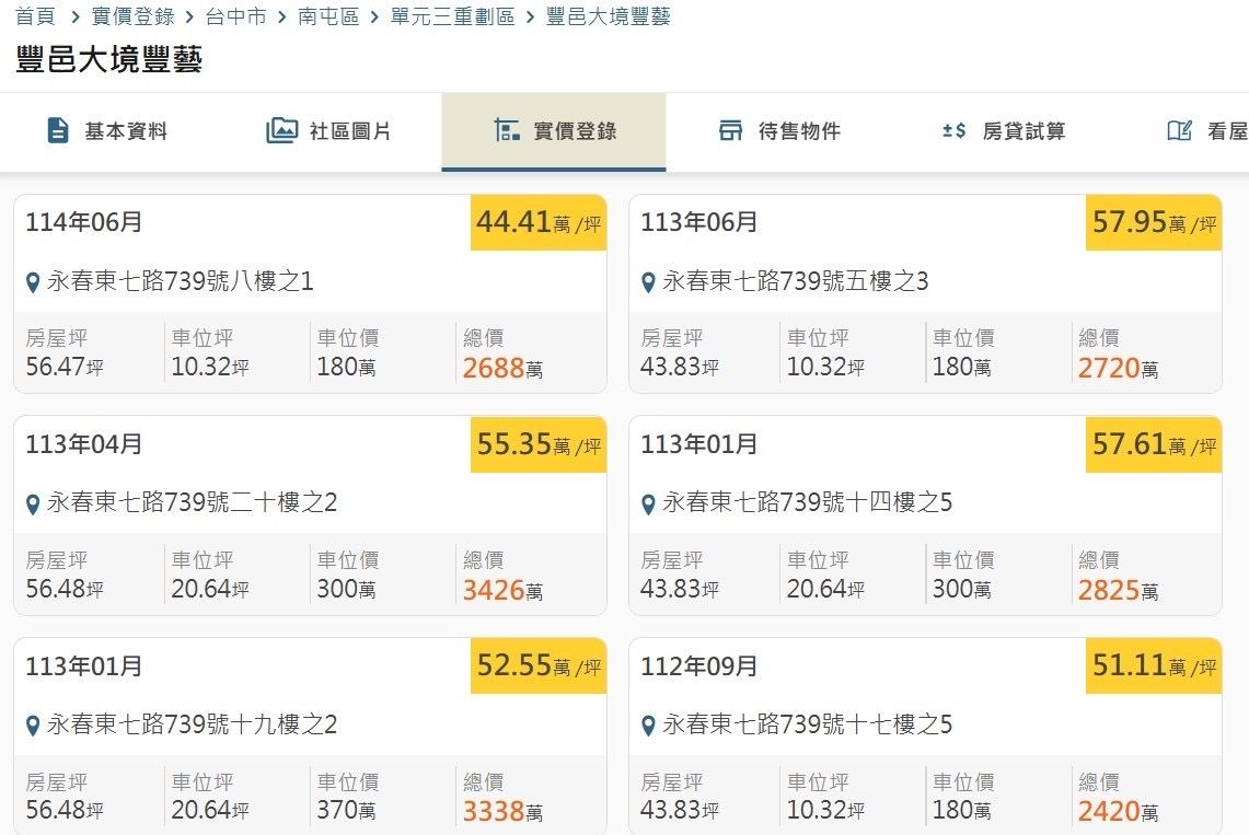 建物門牌: 臺中市南屯區永春東七路(豐邑大境豐藝)