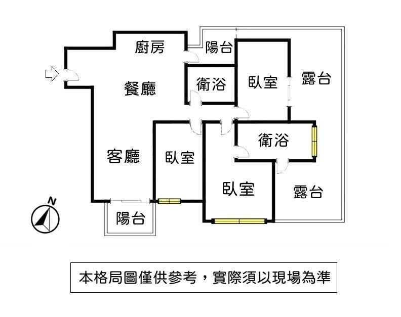 格局 : 3 房 2 廳 2 衛 3 陽台