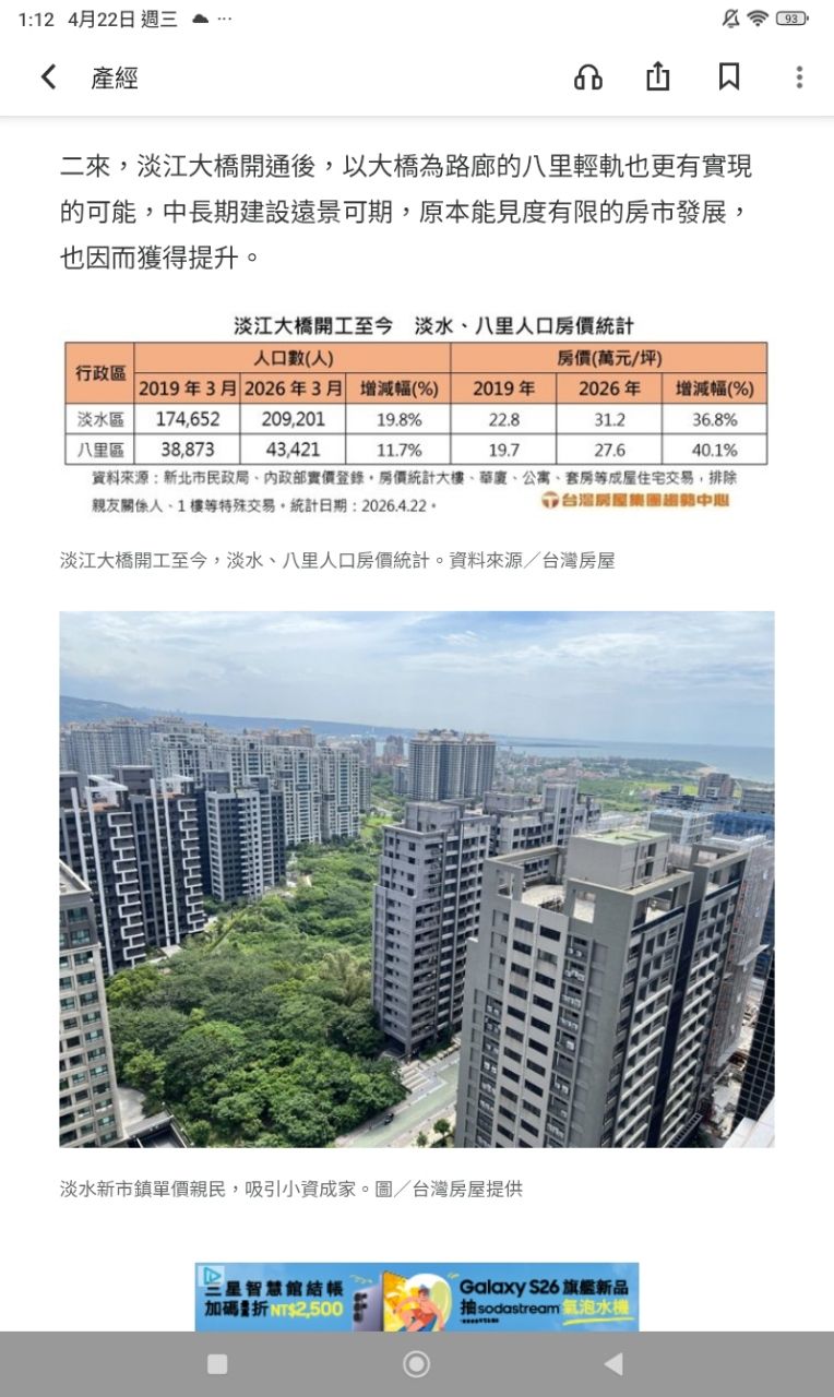 [新聞]淡江大橋吸人又吸金!為何八里房價漲幅比淡水高?