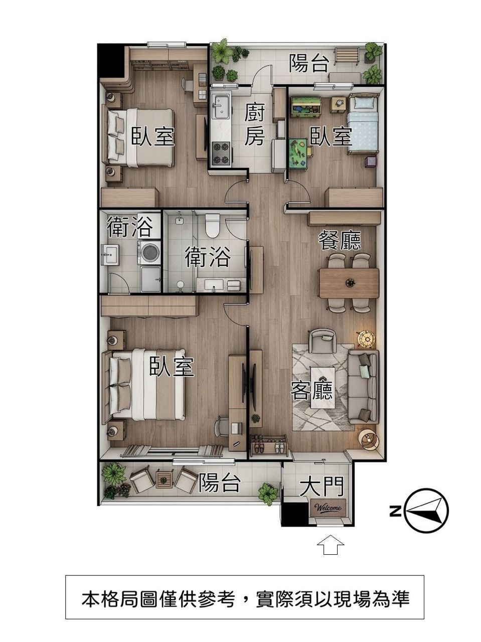 格局 : 3 房 2 廳 2 衛 2 陽台