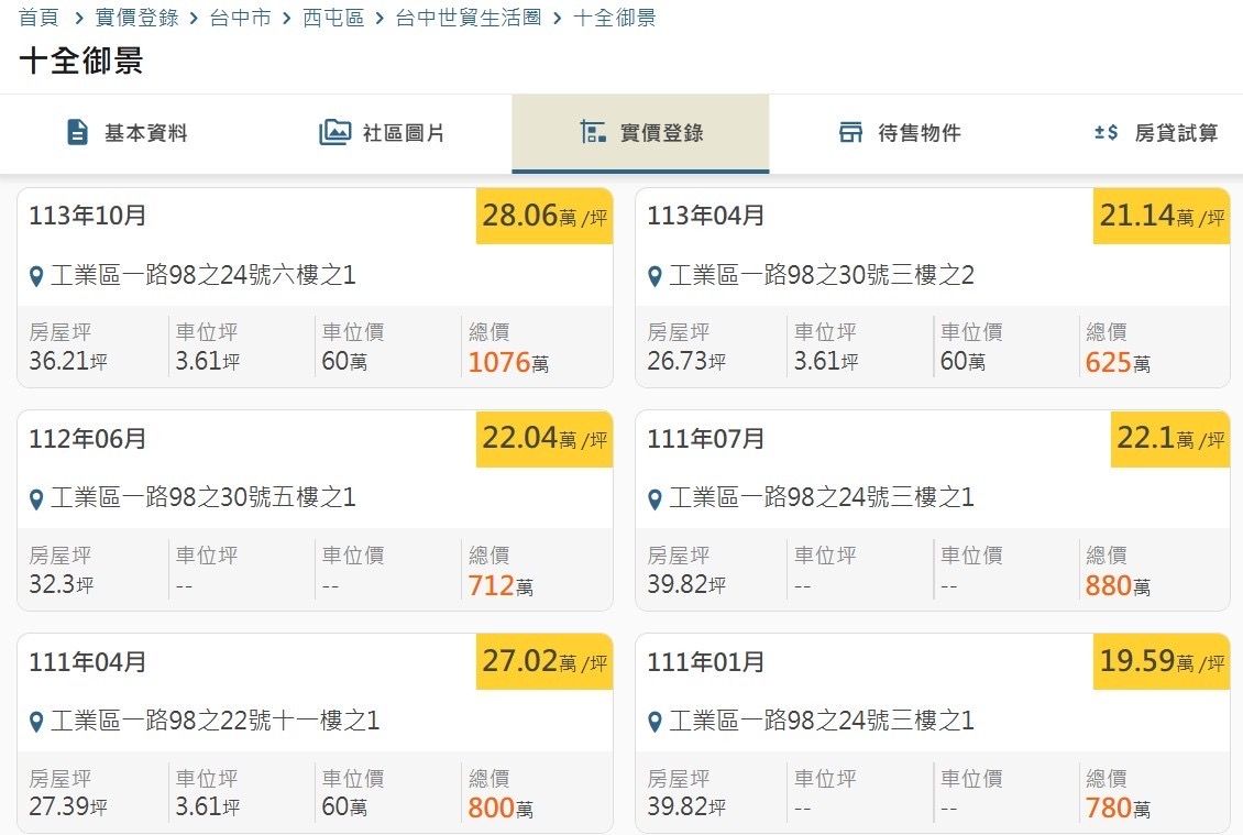 建物門牌: 臺中市西屯區工業區一路(十全御景)