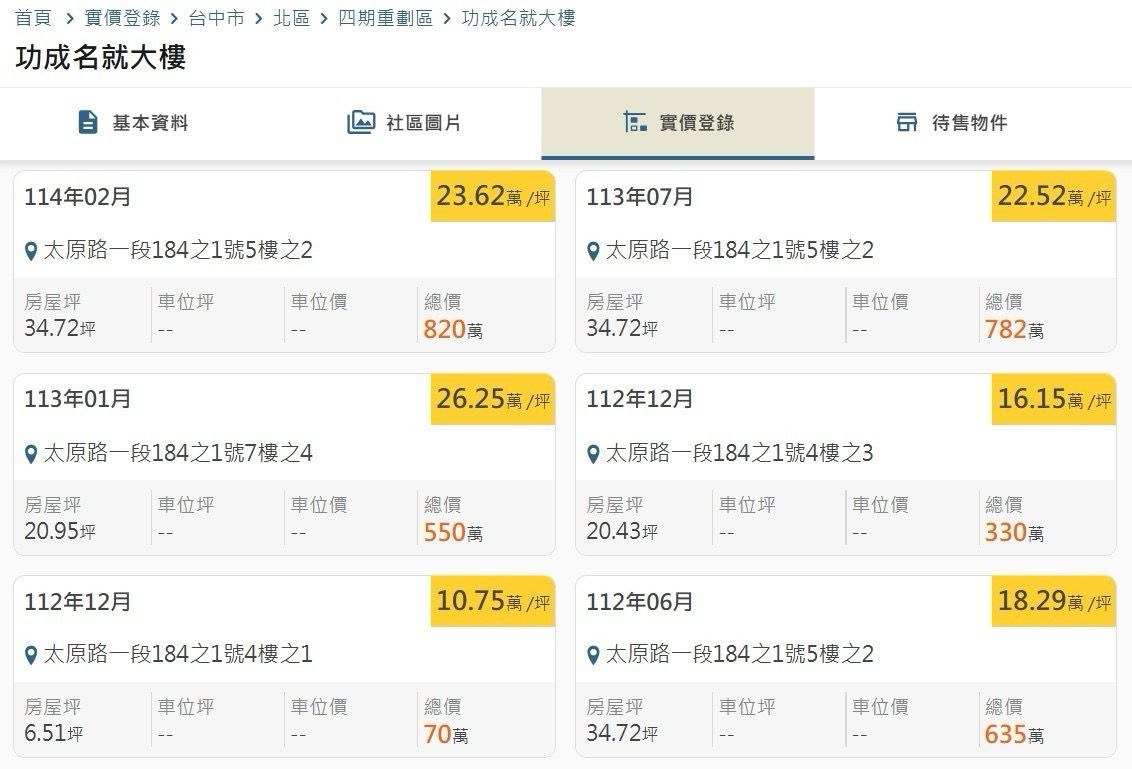 本物件附近地址實價登錄 :