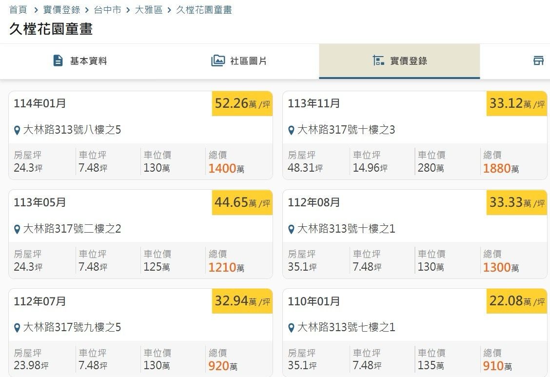 本物件附近地址實價登錄 :