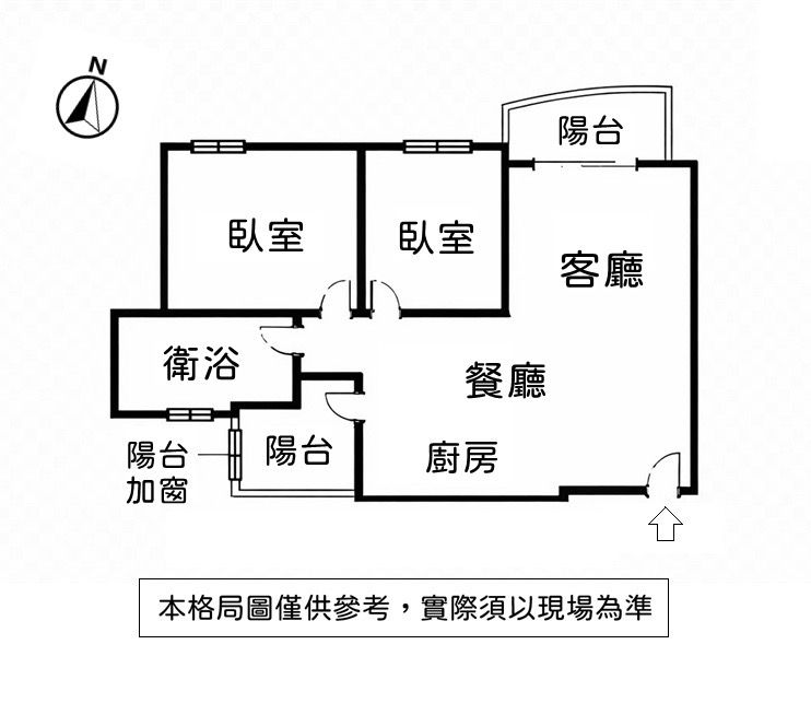 格局 : 2 房 2 廳 1 衛 2 陽台