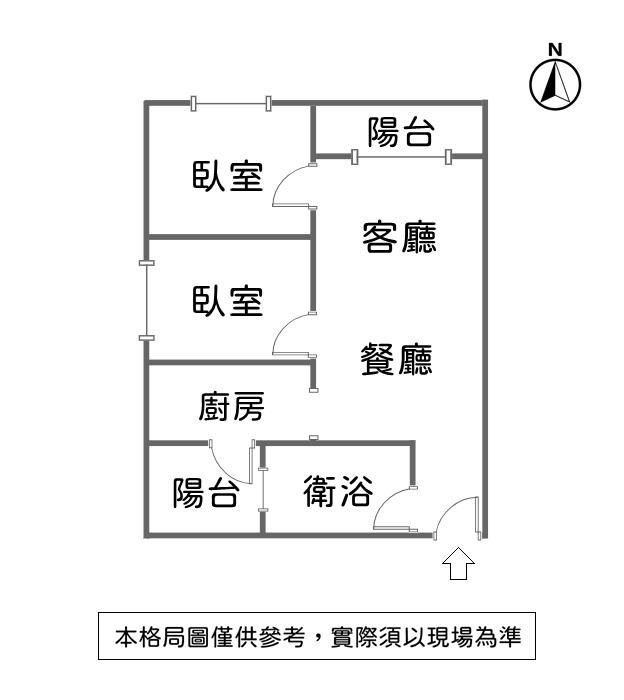 格局 : 2 房 2 廳 1 衛 2 陽台