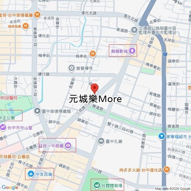 建物門牌: 臺中市北區三民路三段(元城樂More)