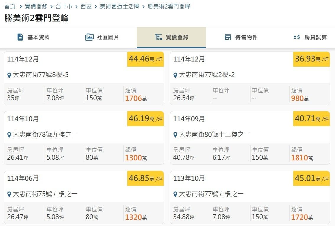 建物門牌: 臺中市西區大忠南街(勝美術2雲門登峰)