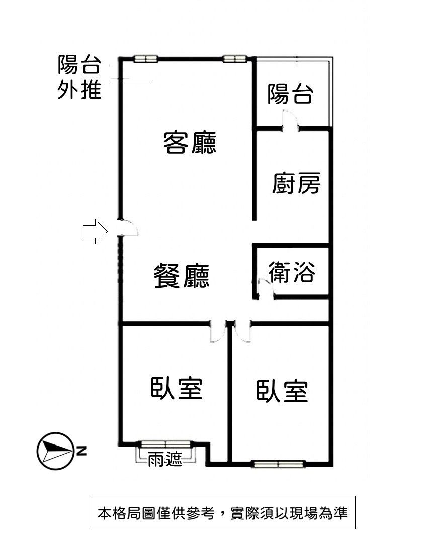 格局 : 2 房 2 廳 1 衛 1 陽台