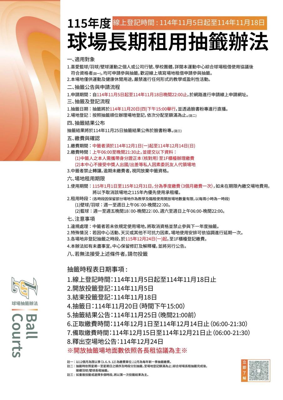 發薪日:中籤後按照運動中心作業時程進行(11/25公告結果,預計大約11月底前後1