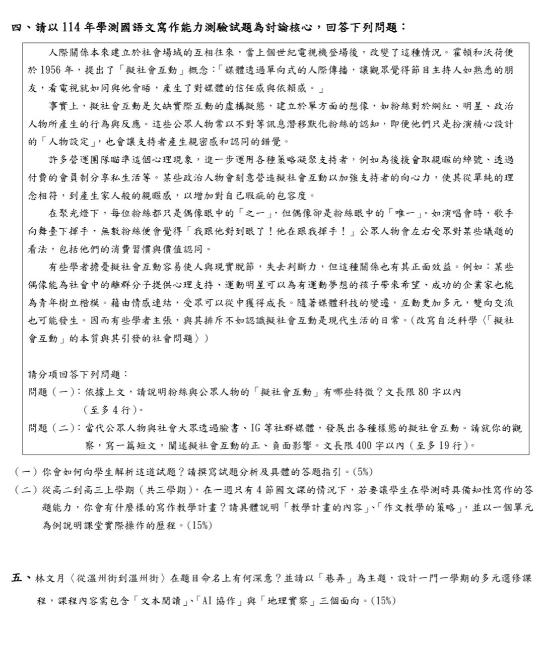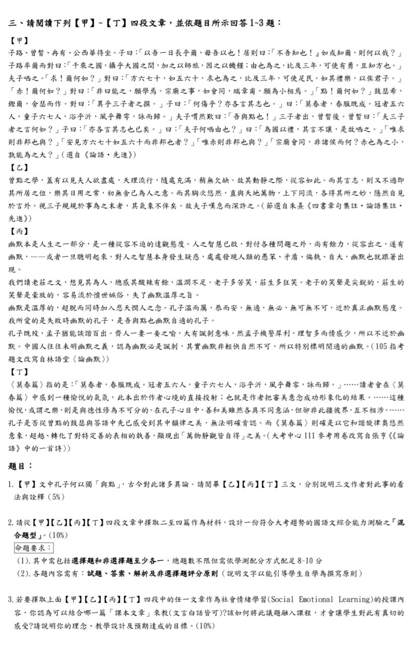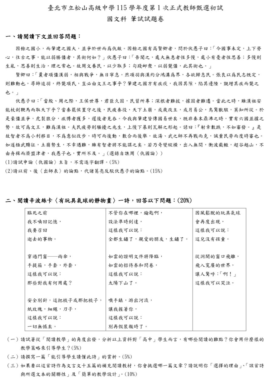 [考題] 115學年度松山高中國文科考題