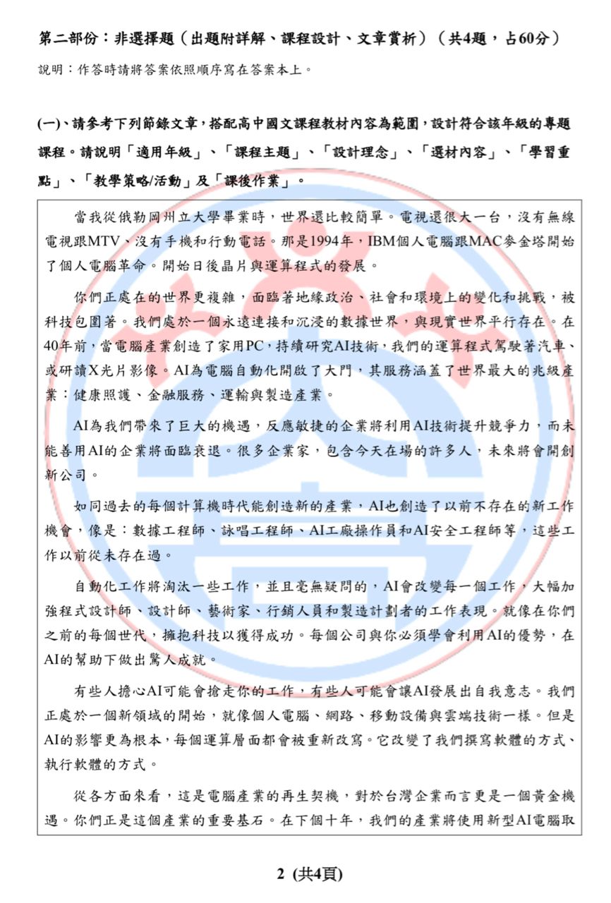 友人因當天忘了去校網看試題公告,因此想詢問大家是否有下載國文的考題。
