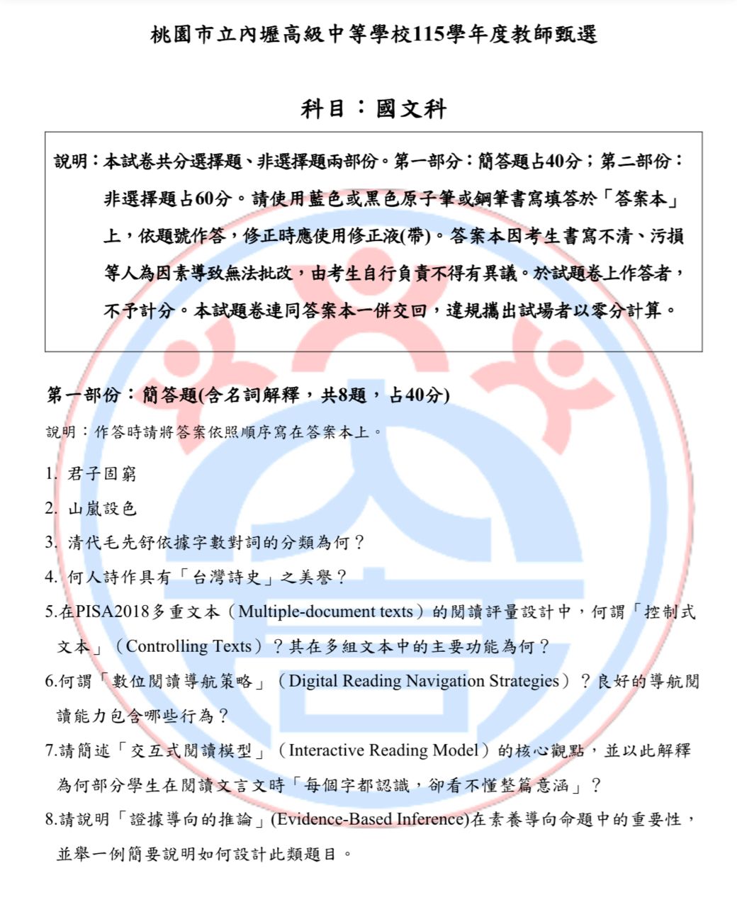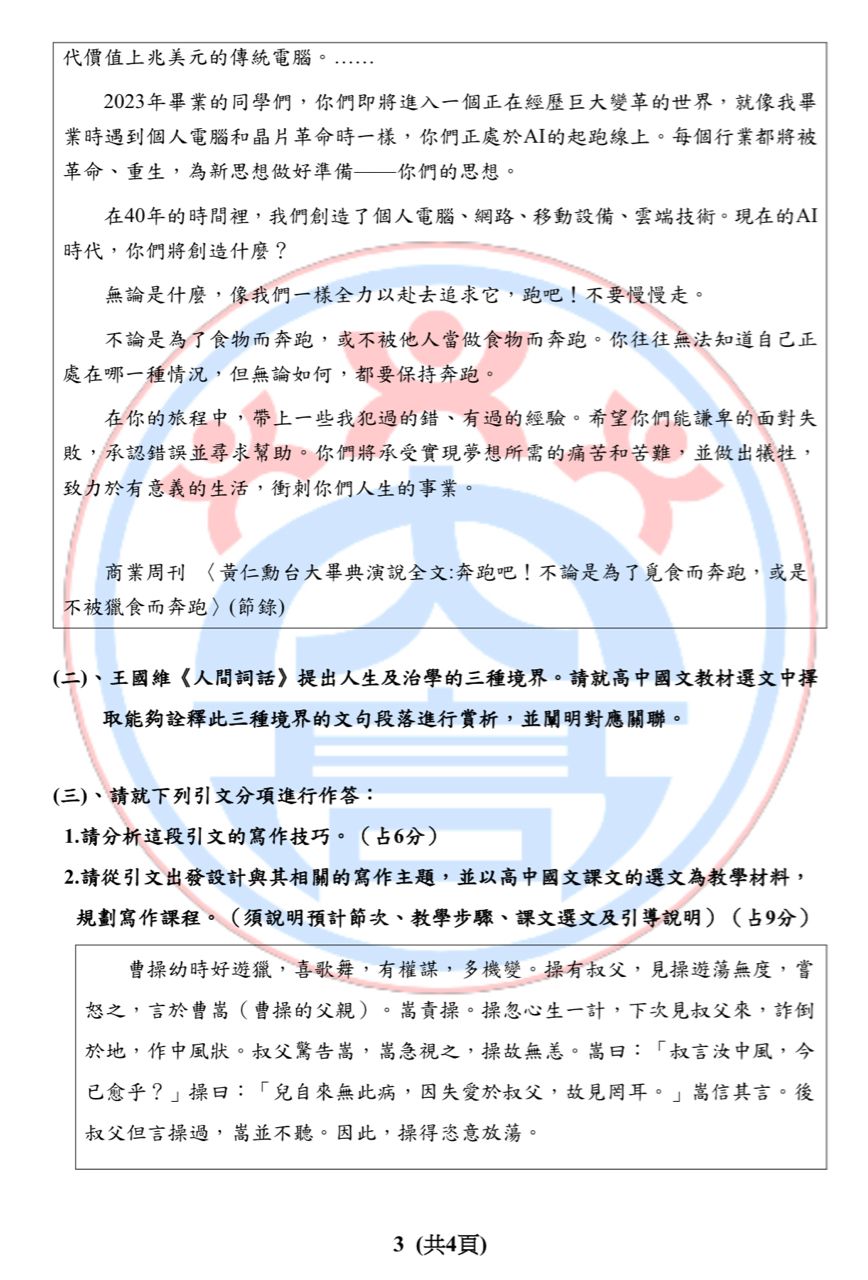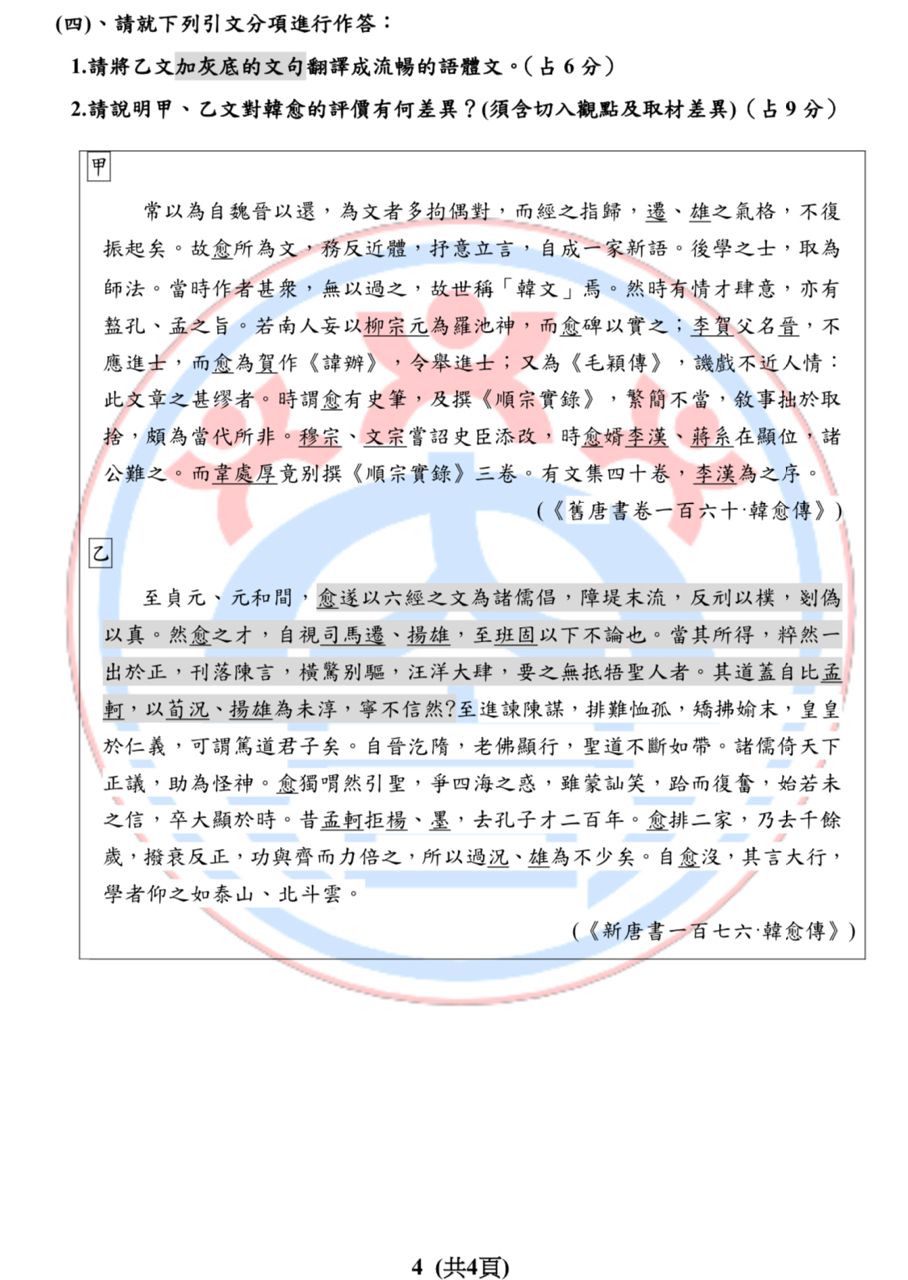 [高中]徵求115內壢高中國文試題